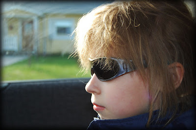 Julia i full mundering ;) Från topp till tå kan man säga .. ny fin huvudbonad .. ny väst, plåmsa, hårband, bälte, skor och solglasögon (inte med på bilden).Efter shoppingen for vi och hemta min lilla pinne från posten och sen hem för att luncha. Pinnen funka ju förstås inte .. eller den funkar väl, men jag slipper inte på internet iaf, så det är väl bara att försöka få hit vår expert då igen. Stackarn ... Nåja, det är ju år och dar sen jag köpte den finfina datorn och här sitter jag och sliter ut Magnus dator .. :( Jag vill ha min dator i skick och det NU!!!! :@